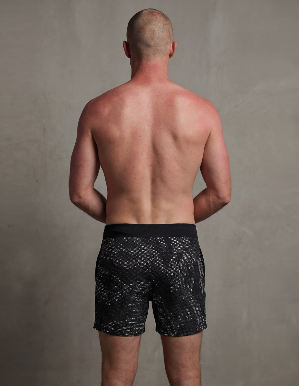 The print is pure static—a monochromatic noise pattern that acts as a glitch in the visual field. It is a neutral that isn’t silent, effectively masking dirt and grime during the travel transition. Engineered for the “glitch-core” user, this hybrid short offers high-performance utility with a brutalist edge.