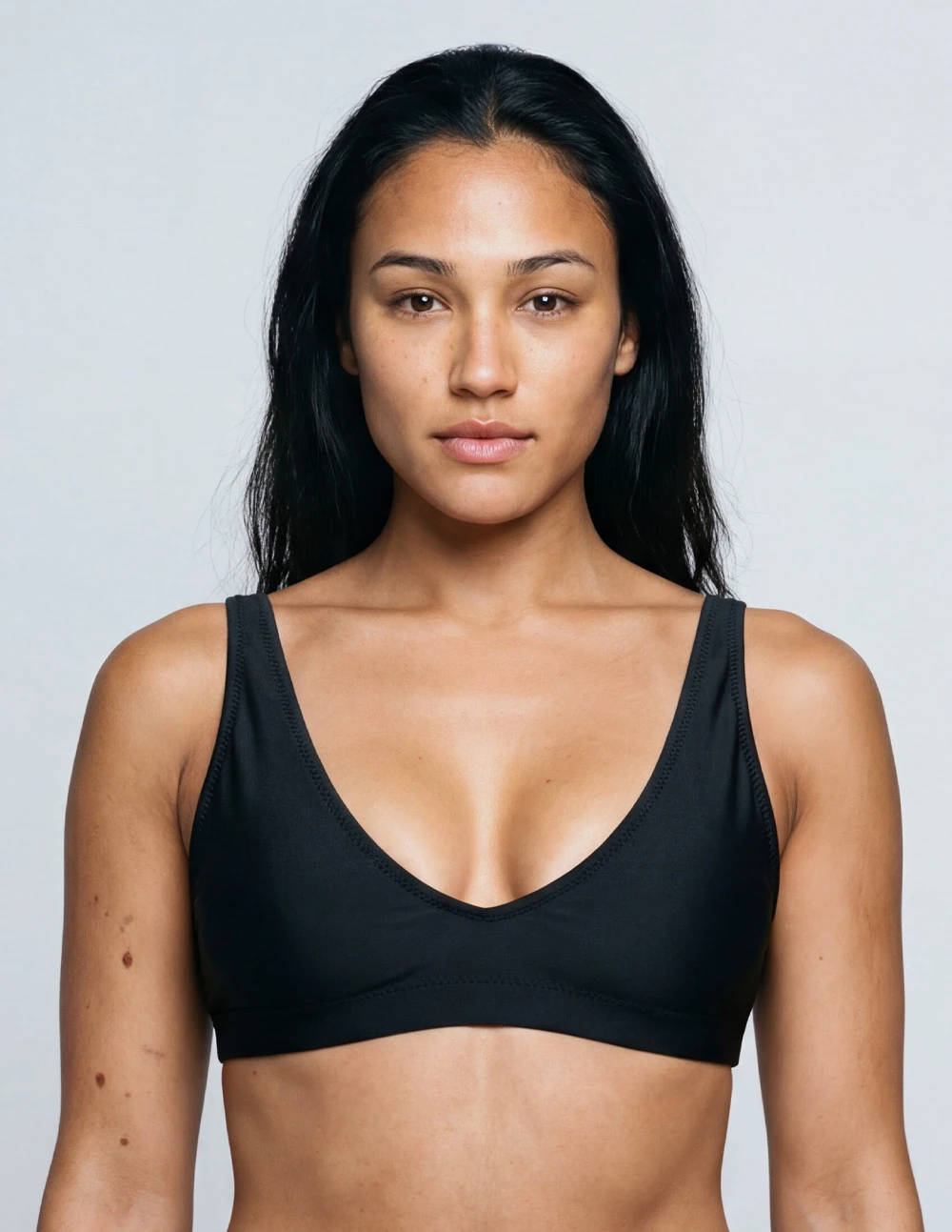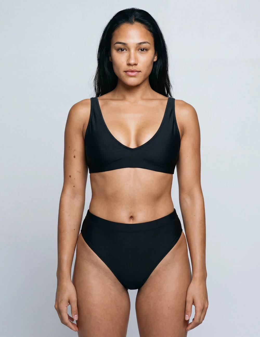 Stealth. Absorbent. Infinite. The absence of light. The foundation of the system. In a world of noise, Void is the signal of discipline. The black baseline for the daily uniform. The Thruster bikini top bridges the gap between a surf top and a sports bra, featuring a scoop neck profile, removable cups and wide straps for maximum security in heavy water.