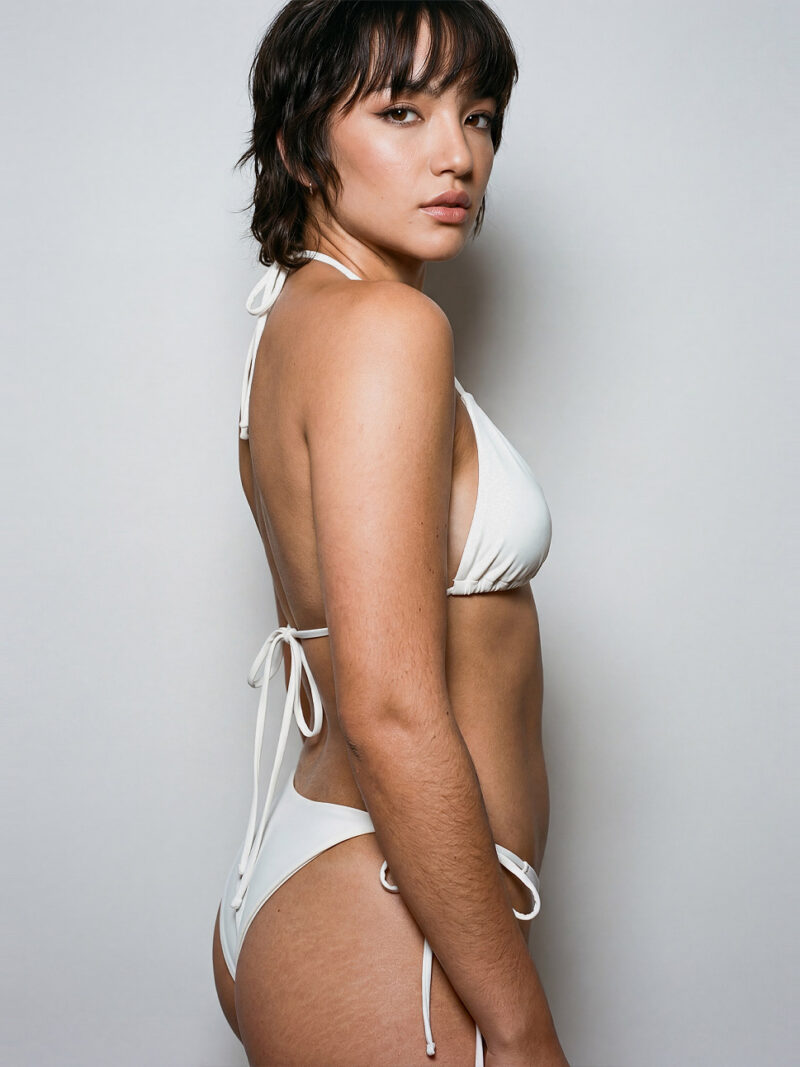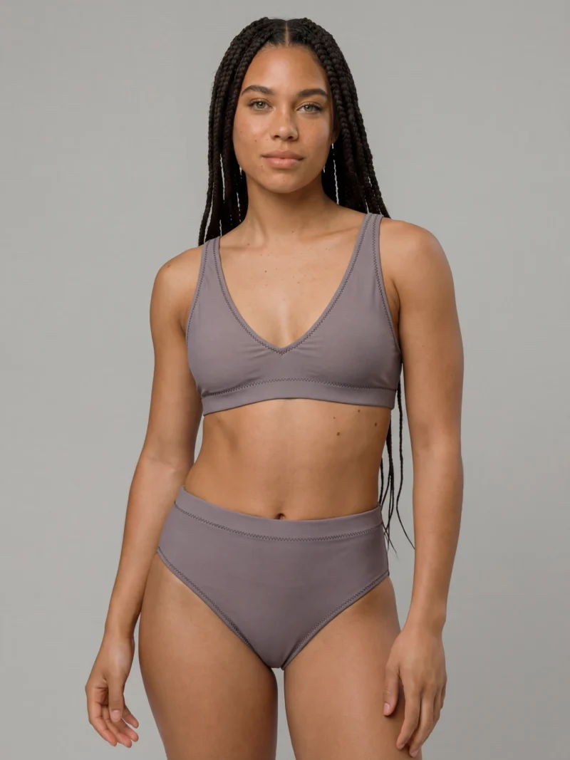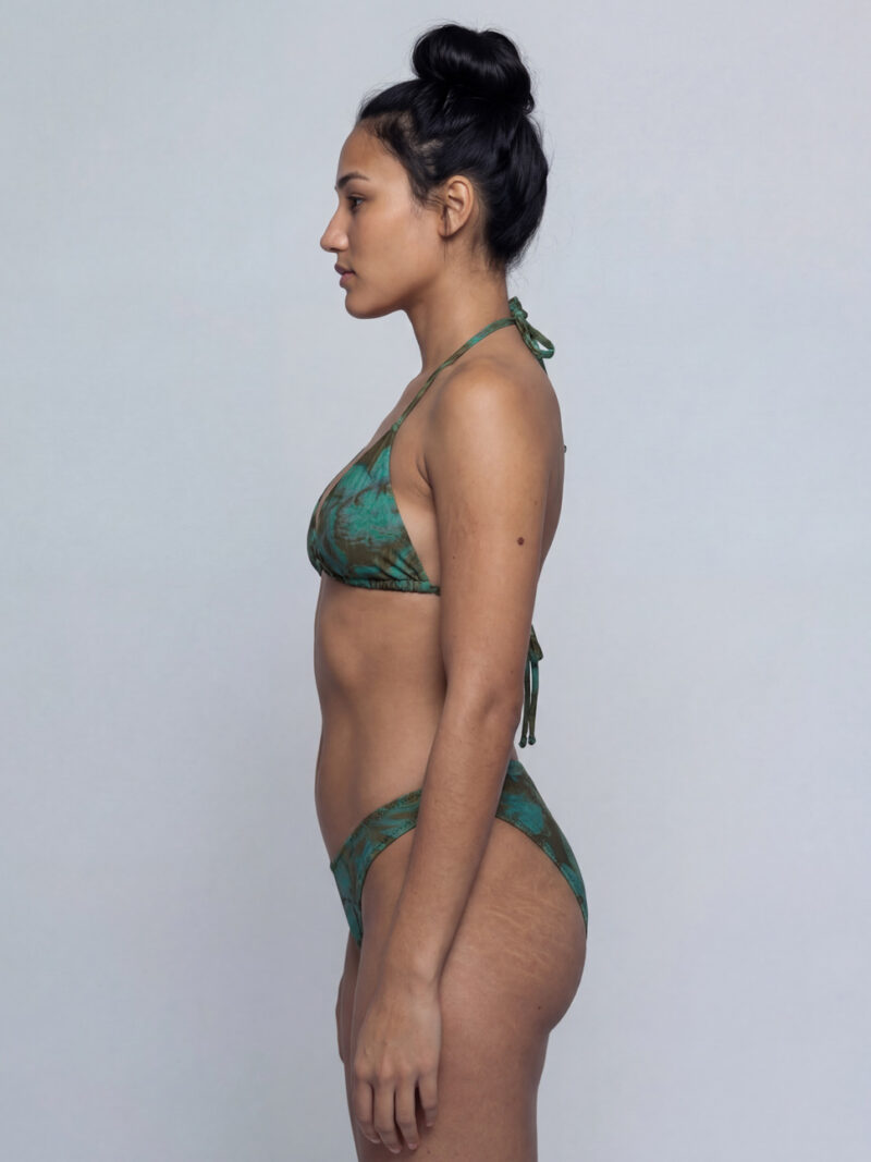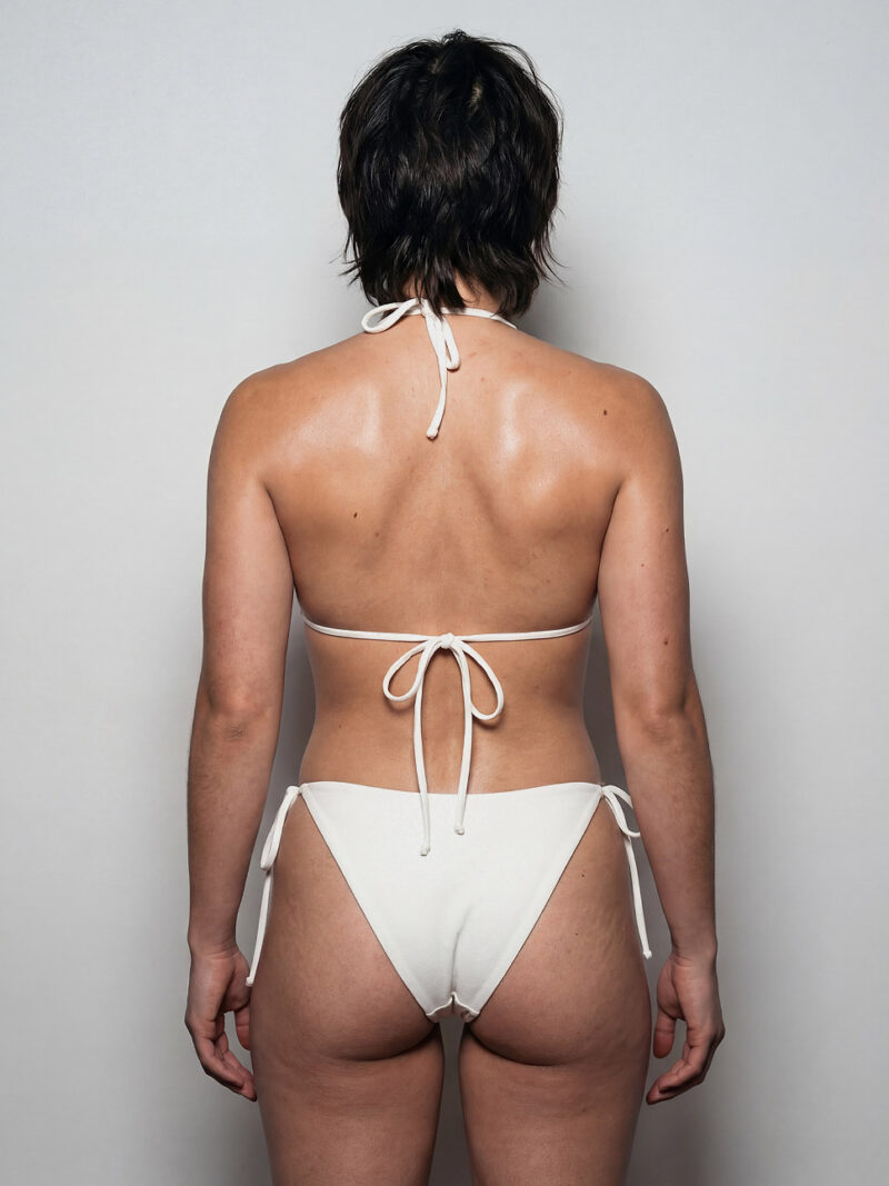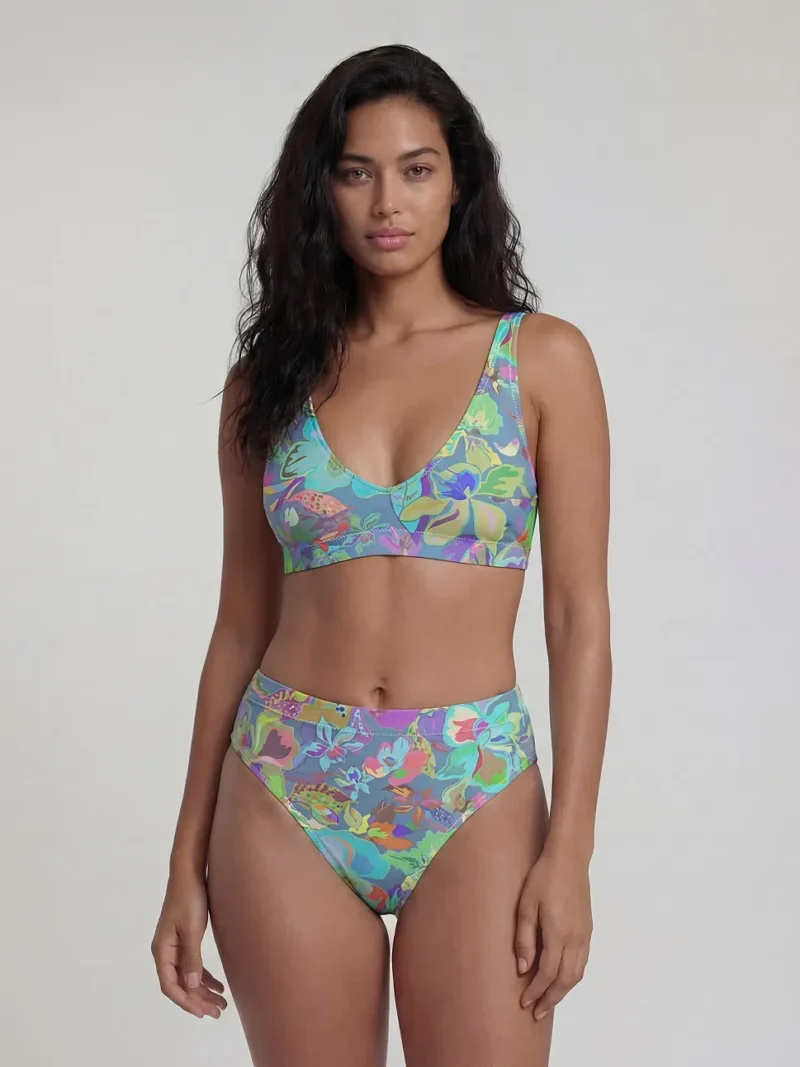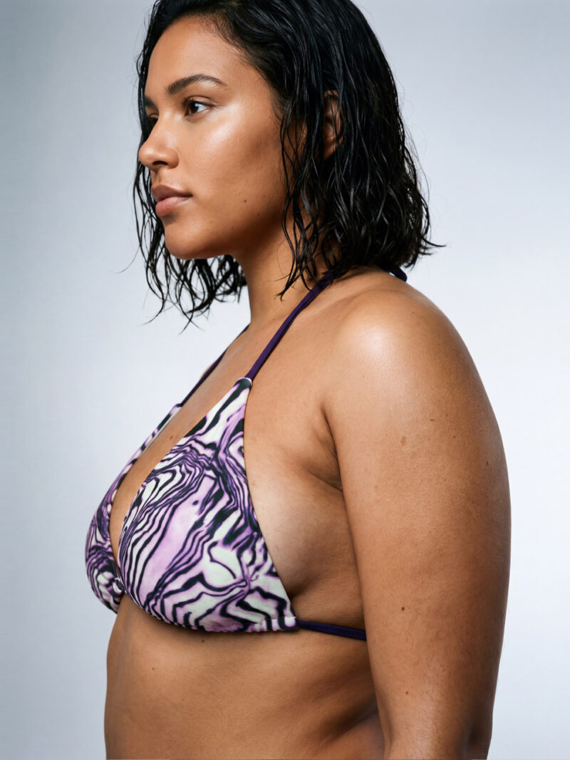 Material Architecture: Recycled swimwear geometries using GRS-certified poly/elastane (75–100%). OEKO-TEX STANDARD 100 verified. Low-impact vegan dyes.