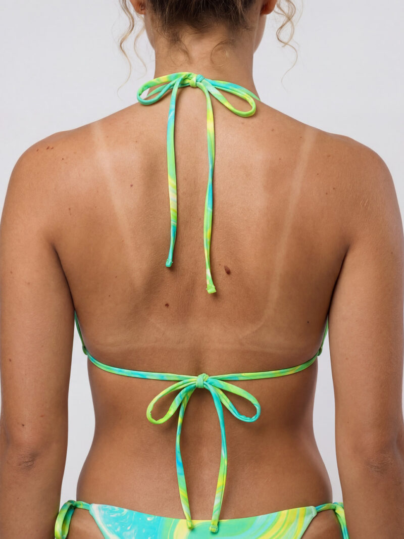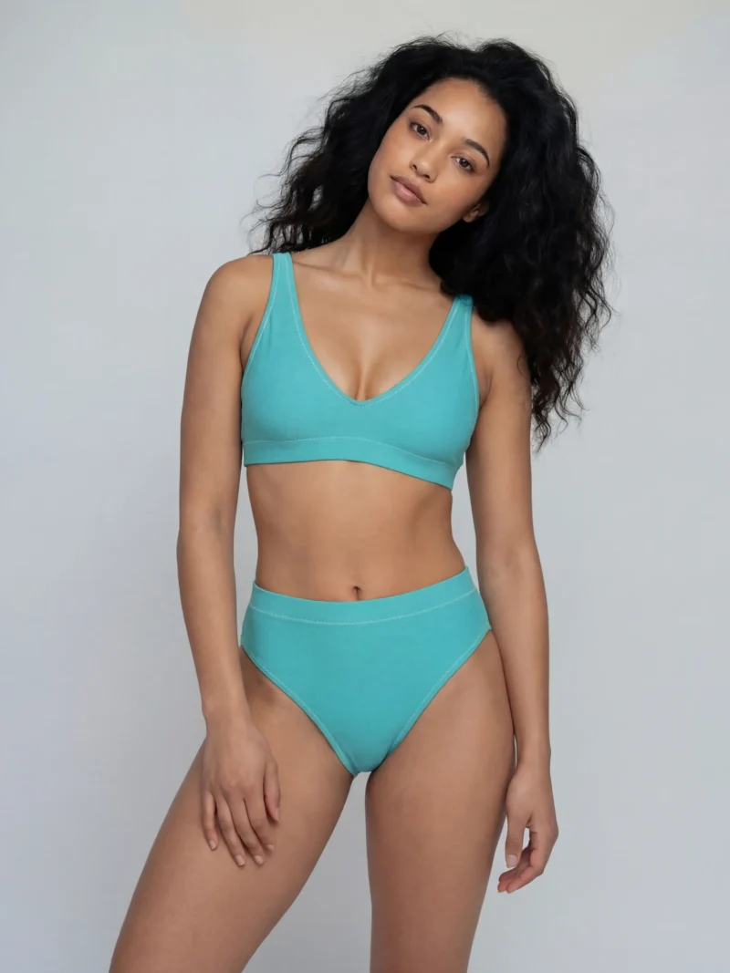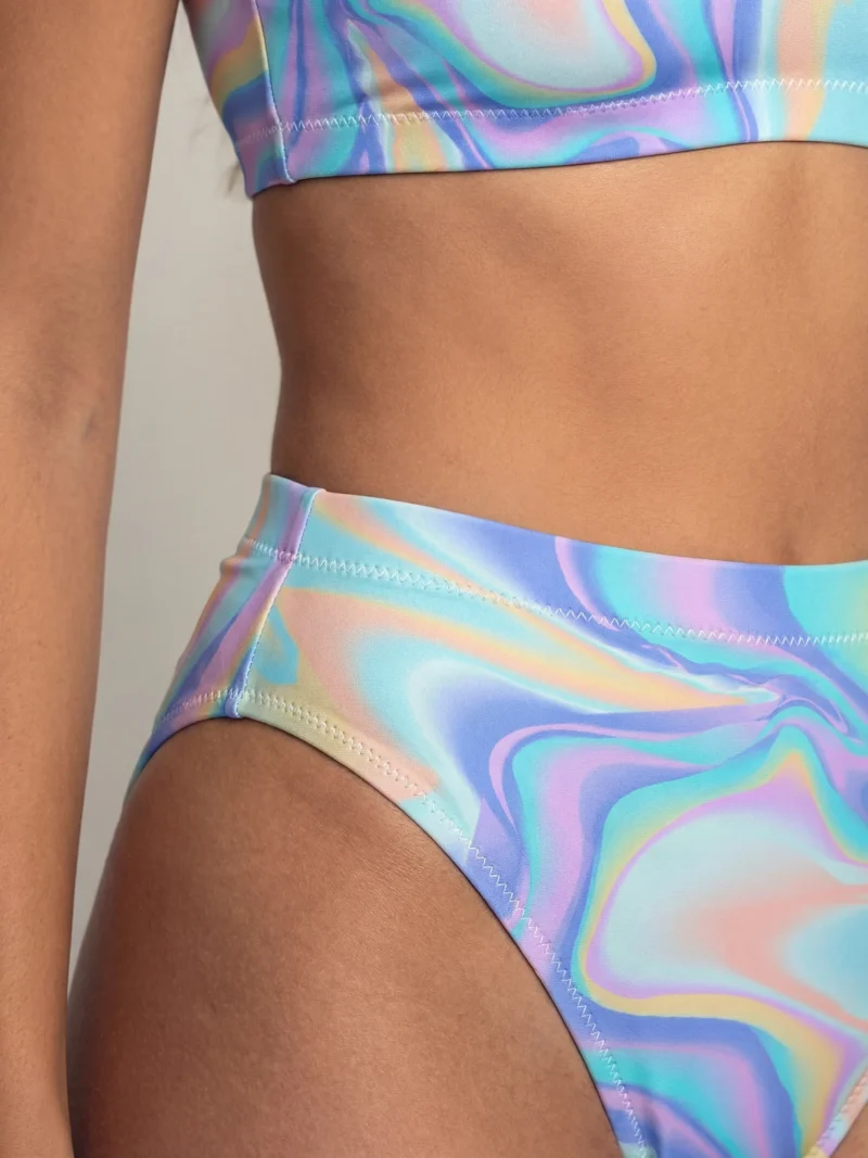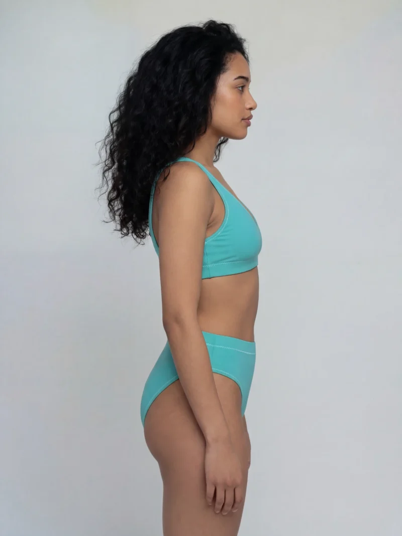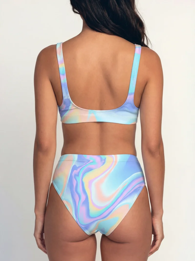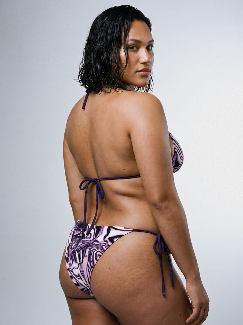 Material Architecture: Recycled swimwear geometries using GRS-certified poly/elastane (75–100%). OEKO-TEX STANDARD 100 verified. Low-impact vegan dyes.